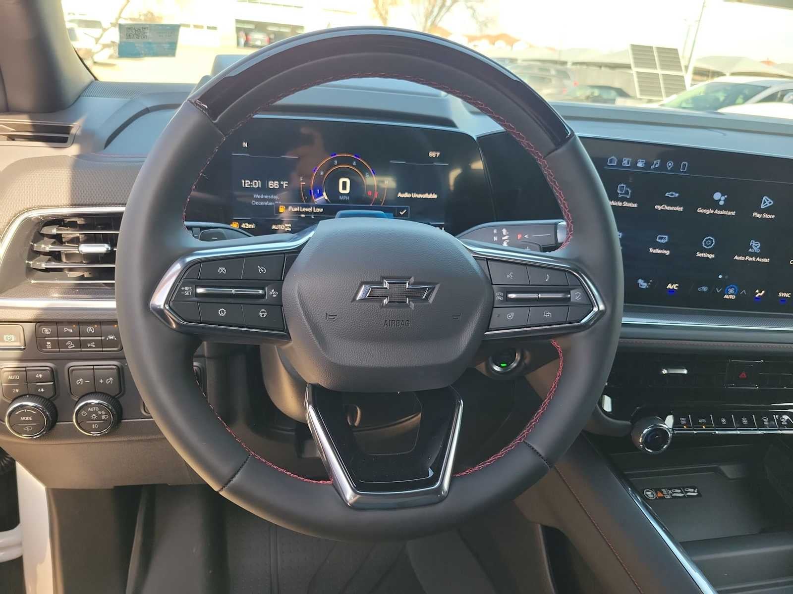 ADVANCED TECHNOLOGY PACKAGE includes (UKL) Super Cruise and (CWM) Technology Package content, COMFORT PACKAGE includes (A45) memory settings, (UQS) Bose 10-speaker Surround with CenterPoint, (DXR) outside heated power-adjustable, power-folding, body-color mirrors with driver-side auto-dimming and integrated turn signal indicators, (KI3) heated steering wheel, (KA6) second row outboard heated seats, (ATT) second row power 60/40 split-folding bench seats, (AS8) third row power 60/40 split-folding bench seats, (TGE) LED animated headlamps and (TAU) LED animated tail lamps, REAR SEAT MEDIA SYSTEM includes dual rear seat-mounted 12.6" diagonal color-touch LCD HD screens, two Bluetooth® headphones with 2 HDMI ports on the back of the center console, SUNROOF, POWER PANORAMIC, DUAL-PANE, TILT-SLIDING with express-open and close and power sunshade, LPO, PREMIUM LINER PROTECTION PACKAGE includes (AAK) 1st and 2nd row premium floor liners, LPO, (RIB) 3rd row all-weather floor liner, LPO and (CAV) all-weather cargo mat, LPO (dealer-installed), SEATS, SECOND ROW BUCKET, POWER RELEASE, TECHNOLOGY PACKAGE Includes (DRZ) Rear Camera Mirror and (UV6) Head-Up Display.), SUSPENSION, AIR RIDE ADAPTIVE, ENGINE, 5.3L ECOTEC3 V8 with Dynamic Fuel Management, Direct Injection and Variable Valve Timing, includes aluminum block construction (355 hp [265 kW] @ 5600 rpm, 383 lb-ft of torque [518 Nm] @ 4100 rpm) (STD), TRANSMISSION, 10-SPEED AUTOMATIC electronically controlled with overdrive, includes Traction Select System including tow/haul (STD), AUDIO SYSTEM, 17.7" DIAGONAL ADVANCED COLOR LCD DISPLAY with Google built-in compatibility (select service plan required, terms and limitations apply), including navigation capability, connected apps, personalized profiles for each driver's settings, Natural Voice Recognition and Phone Integration (STD), ADVANCED TRAILERING PACKAGE includes (UKW) Blind Zone Steering Assist with Trailering, (PZ8) Hitch View and (UET) Smart Trailer Integration Indicator. Chevrolet RST with Summit White exterior and Jet Black/Victory Red interior features a 8 Cylinder Engine with 355 HP at 5600 RPM*.