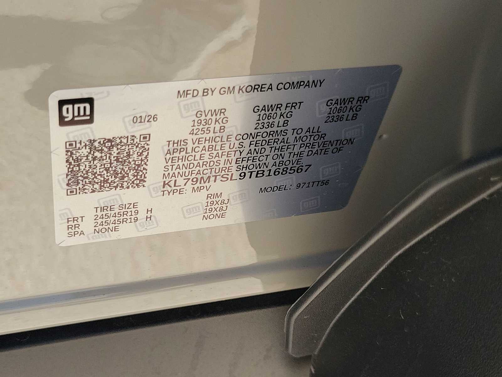 - Tires, 245/45R19 all-season, blackwall