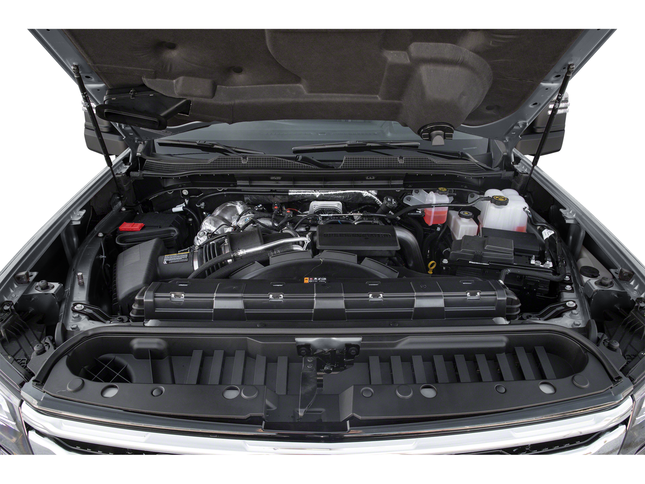 TECHNOLOGY PACKAGE includes (DRZ) Rear Camera Mirror and (UV6) Multicolor 15" Diagonal Head-Up Display (Includes (KSG) Adaptive Cruise Control. LPO, HARD-FOLDING TONNEAU COVER BY REV (dealer-installed), GOOSENECK/5TH WHEEL PREP PACKAGE Hitch platform to accept Gooseneck or 5th Wheel hitch. Includes hitch platform with tray to accept ball, stamped bed holes with removable caps installed and bed mounted 7-pin trailer harness (similar to UY2 harness). (Includes (CGN) Chevytec spray-on bedliner. AUDIO SYSTEM, CHEVROLET INFOTAINMENT 3 PREMIUM SYSTEM with Google built-in compatibility (select service plan required, terms and limitations apply) including navigation capability, 13.4" diagonal HD color touchscreen, includes multi-touch display, AM/FM stereo, Bluetooth® streaming audio for music and most phones; featuring Wireless Apple CarPlay® and Wireless Android Auto® capability for compatible phones, advanced voice recognition, in-vehicle apps, personalized profiles for infotainment and vehicle settings (STD), ENGINE, 6.6L V8 with Direct Injection and Variable Valve Timing, gasoline, (401 hp [299 kW] @ 5200 rpm, 464 lb-ft of torque [629 N-m] @ 4000 rpm) (STD), TRANSMISSION, ALLISON 10-SPEED AUTOMATIC (STD). Chevrolet High Country with BLACK exterior and JET BLACK interior features a 8 Cylinder Engine with 401 HP at 5200 RPM*.