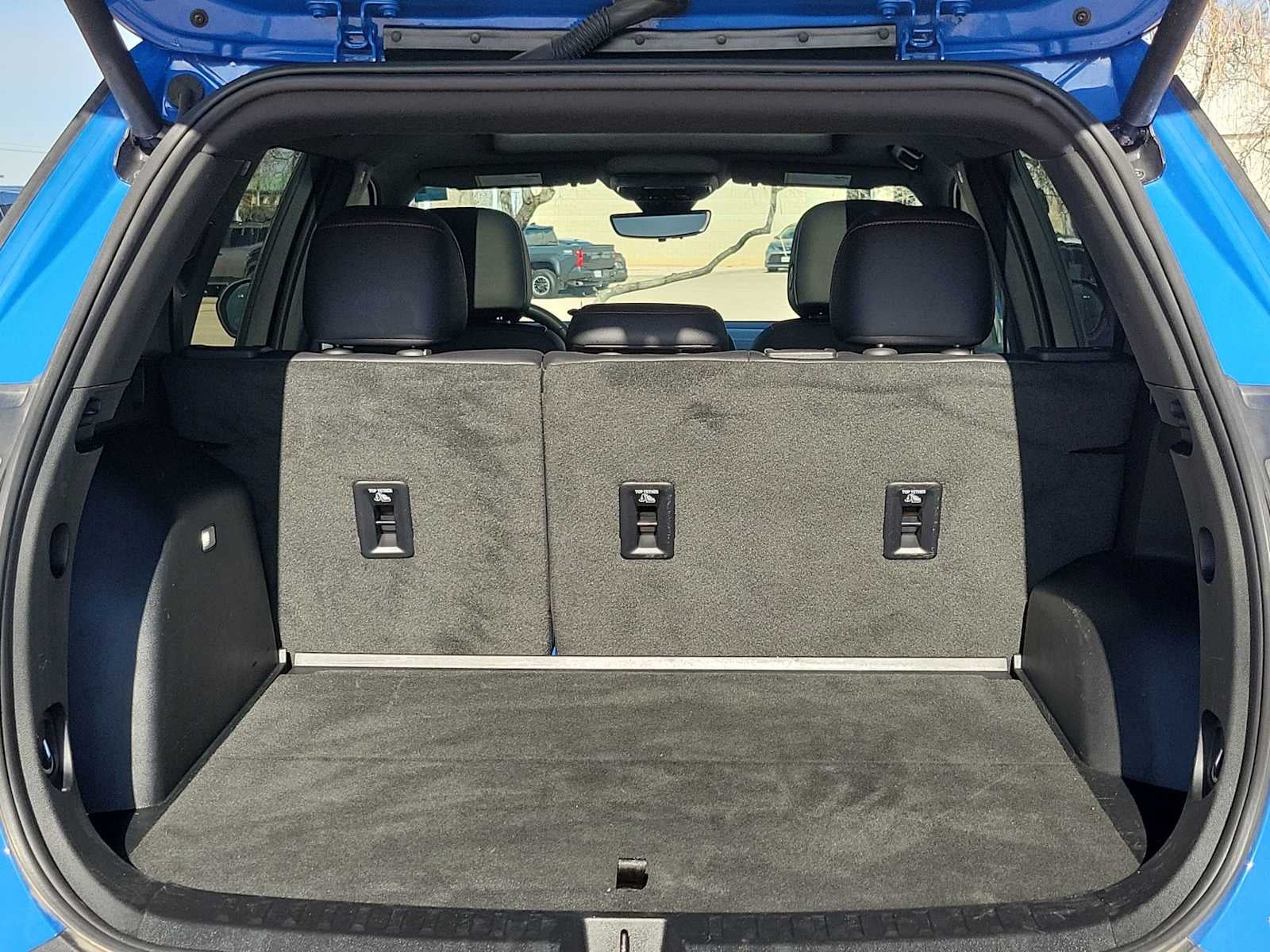 SUNROOF, POWER, DUAL GLASS, PANORAMIC, SLIDING with power sunshade, SAFETY AND TECHNOLOGY PACKAGE includes (DRZ) Rear Camera Mirror, (T3U) front fog lamps, (UKK) Rear Pedestrian Alert, (UV2) HD Surround Vision and (UVX) Traffic Sign Recognition. ENGINE, 1.5L TURBO DOHC 4-CYLINDER, SIDI, VVT (STD), TRANSMISSION, CONTINUOUSLY VARIABLE (CVT) (STD). Chevrolet FWD RS with Reef Blue Metallic exterior and Black with Red Accents interior features a 4 Cylinder Engine with 175 HP at 5600 RPM*.