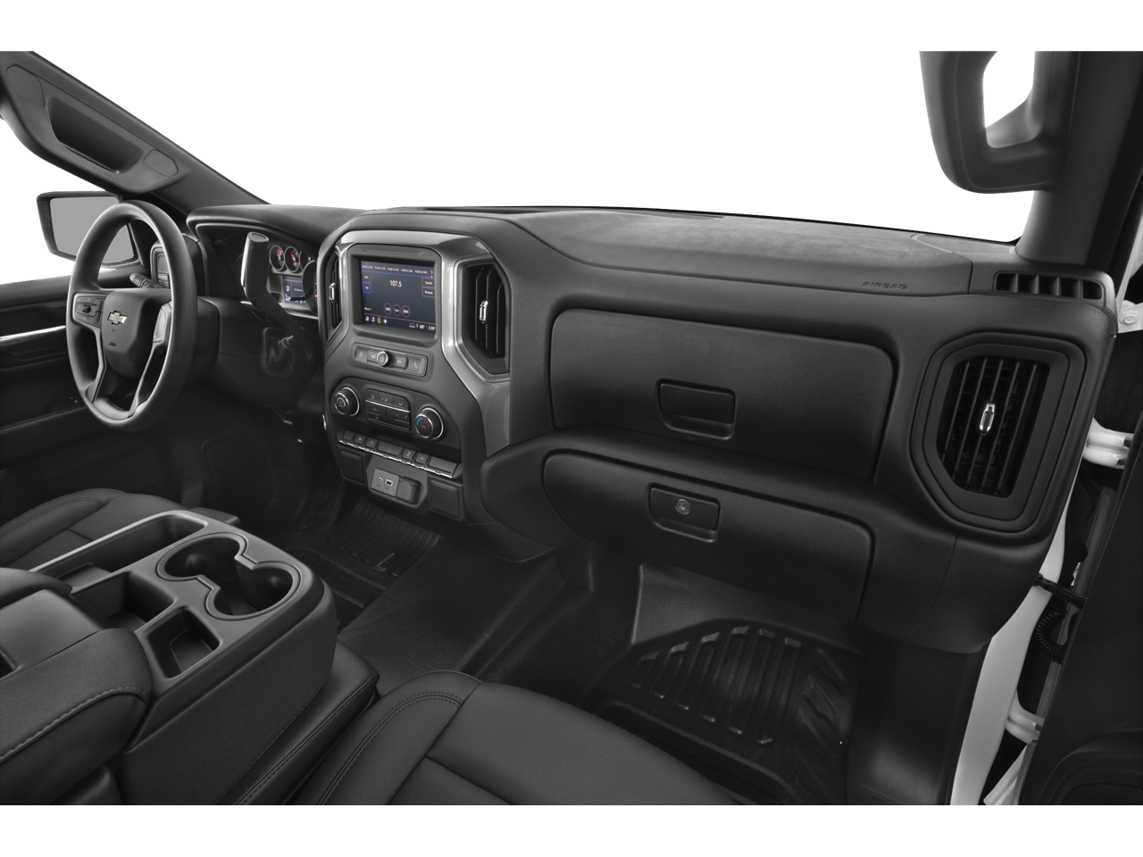 LPO, ASSIST STEPS - 4" BLACK - ROUND (dealer-installed), CHEVYTEC SPRAY-ON BEDLINER, BLACK (does not include spray-on liner on tailgate due to Black composite inner panel), WHEELS, 20" X 9" (50.8 CM X 22.9 CM) HIGH GLOSS BLACK PAINTED ALUMINUM, AUDIO SYSTEM, CHEVROLET INFOTAINMENT 3 SYSTEM 7" diagonal HD color touchscreen, AM/FM stereo, Bluetooth® audio streaming for 2 active devices, voice command pass-through to phone, Wireless Apple CarPlay® and Wireless Android Auto® compatibility (STD), ENGINE, TURBOMAX (310 hp [231 kW] @ 5600 rpm, 430 lb-ft of torque [583 Nm] @ 3000 rpm) (STD), TRANSMISSION, 8-SPEED AUTOMATIC, ELECTRONICALLY CONTROLLED with overdrive and tow/haul mode. Includes Cruise Grade Braking and Powertrain Grade Braking (STD). Chevrolet Custom with Black exterior and Jet Black interior features a 4 Cylinder Engine with 310 HP at 5600 RPM*.