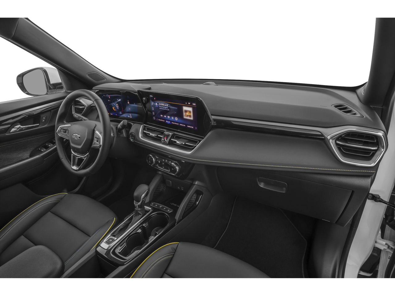 CONVENIENCE PACKAGE includes (C68) automatic climate control air conditioning, (USS) one type-A and one type-C charging only USB ports, (K4C) Wireless Charging, (KI6) 120-volt power outlet, (DD8) inside rearview auto-dimming mirror and (DMS) driver and front passenger illuminated vanity mirrors, covered, sliding visors (Also includes (TC2) hands free power liftgate. ADAPTIVE CRUISE AND SOUND PACKAGE includes (UQA) Bose premium 7-speaker system and (KSG) Adaptive Cruise Control, DRIVER CONFIDENCE PACKAGE includes (UKC) Lane Change Alert with Side Blind Zone Alert, (UFG) Rear Cross Traffic Alert and (UD7) Rear Park Assist, AUDIO SYSTEM, 11" DIAGONAL HD COLOR TOUCHSCREEN, AM/FM STEREO. Additional features for compatible phones include: Bluetooth® audio streaming for 2 active devices, voice command pass-through to phone, wireless Apple CarPlay® and wireless Android Auto® capable (STD), ENGINE, ECOTEC 1.3L I3 TURBO DOHC SIDI WITH VARIABLE VALVE TIMING (VVT) (155 hp [115 kW] @ 5600 rpm, 174 lb-ft torque [236 N-m] @ 1600 rpm) (STD), TRANSMISSION, CONTINUOUSLY VARIABLE (CVT) (STD). Chevrolet ACTIV with Iridescent Pearl Tricoat exterior and Jet Black with Yellow stitching interior features a 3 Cylinder Engine with 155 HP at 5600 RPM*.