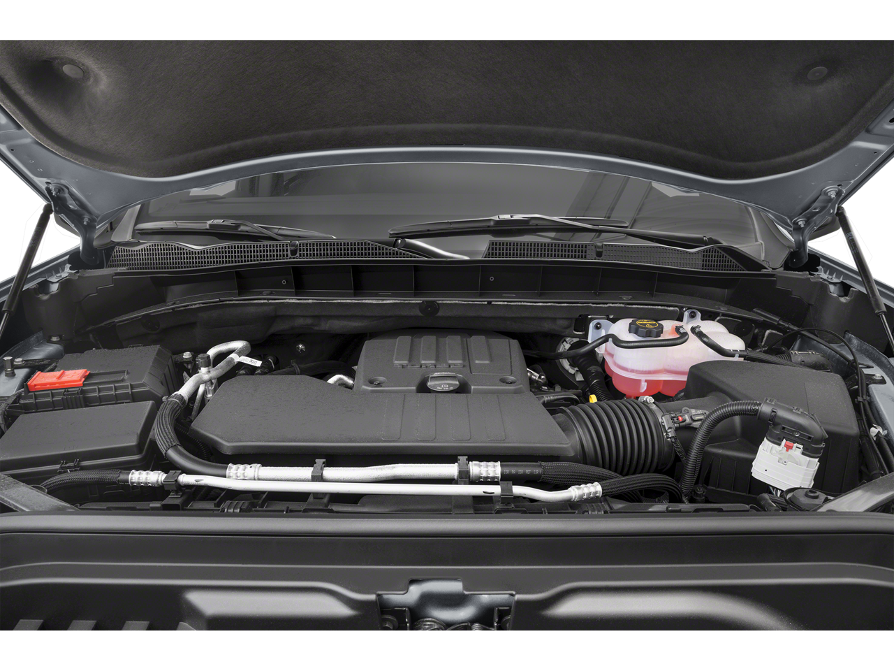 AUDIO SYSTEM, 13.4" DIAGONAL PREMIUM GMC INFOTAINMENT SYSTEM WITH GOOGLE BUILT IN APPS SUCH AS NAVIGATION AND VOICE ASSISTANCE, INCLUDES COLOR TOUCH-SCREEN, MULTI-TOUCH DISPLAY, AM/FM STEREO Bluetooth® streaming audio for music and most phones; featuring wireless Android Auto® and Apple CarPlay® capability for compatible phones (STD), ENGINE, TURBOMAX (310 hp [231 kW] @ 5600 rpm, 430 lb-ft of torque [583 Nm] @ 3000 rpm) (STD), TRANSMISSION, 8-SPEED AUTOMATIC, (COLUMN SHIFTER) ELECTRONICALLY CONTROLLED with overdrive and tow/haul mode. Includes Cruise Grade Braking and Powertrain Grade Braking (STD). GMC Elevation with Sterling Metallic exterior and Jet Black interior features a 4 Cylinder Engine with 310 HP at 5600 RPM*.